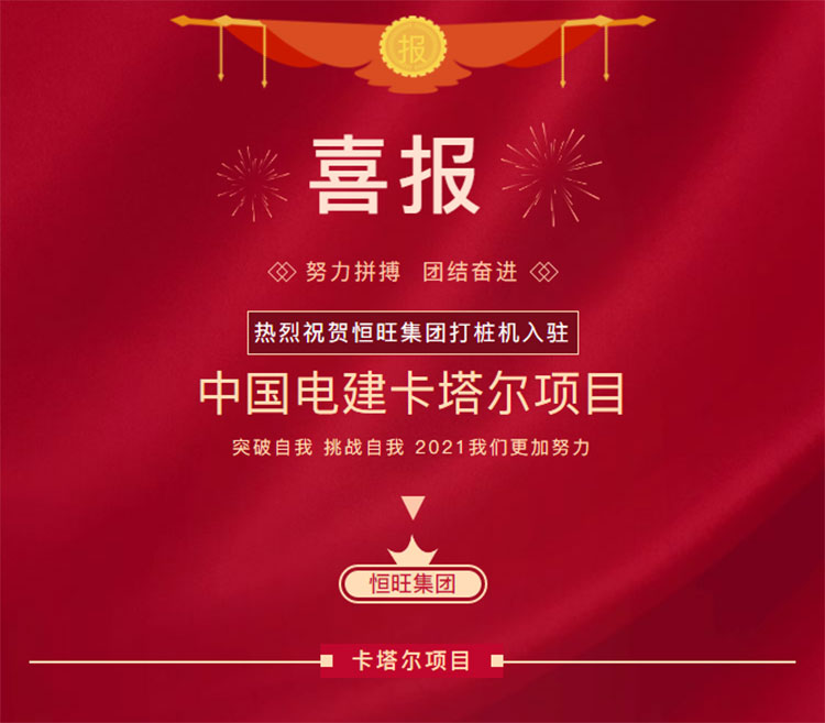 熱烈祝賀泰州(zhōu)合洪精密制造有(yǒu)限公司(急速版)打(dǎ)樁機入駐中國電(dian)建卡塔爾項目!!!