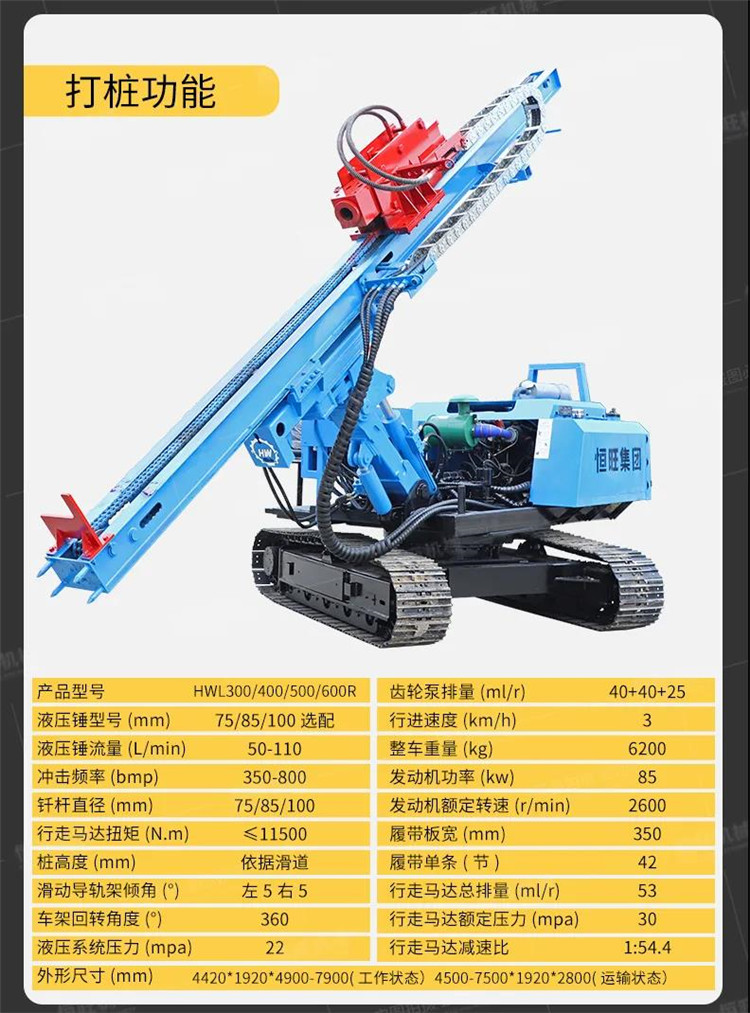 該機(jī)設計合理,操(cāo)作簡單,整機(ji)可任意位置(zhì)前後移動、大(dà)臂可左🌈右擺(bǎi)動.具有定位(wei)快、打樁快、效(xiào)率高等特點(dian)🔱,也可以根據(ju)客戶要求定(ding)制。
